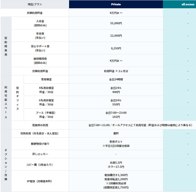 気鋭の建築家集団UAOが監修しており、鋭角的ながら清潔感とクールな印象は、来訪されるお客様にも好印象を与えてくれます。専用オフィスは1名から6名用までのサイズで、全室が個室・家具付き・インターネット完備のオールインワン仕様。必要な時に、必要なだけ、柔軟な働き方をサポートしていきます。