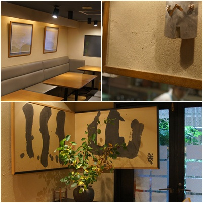 趣味の良い絵画や書、オブジェが随所に飾られた店内。